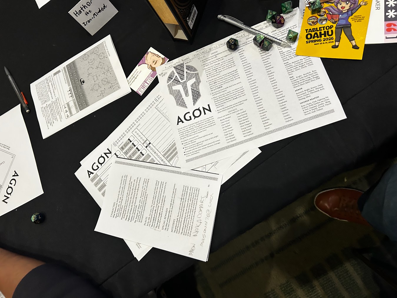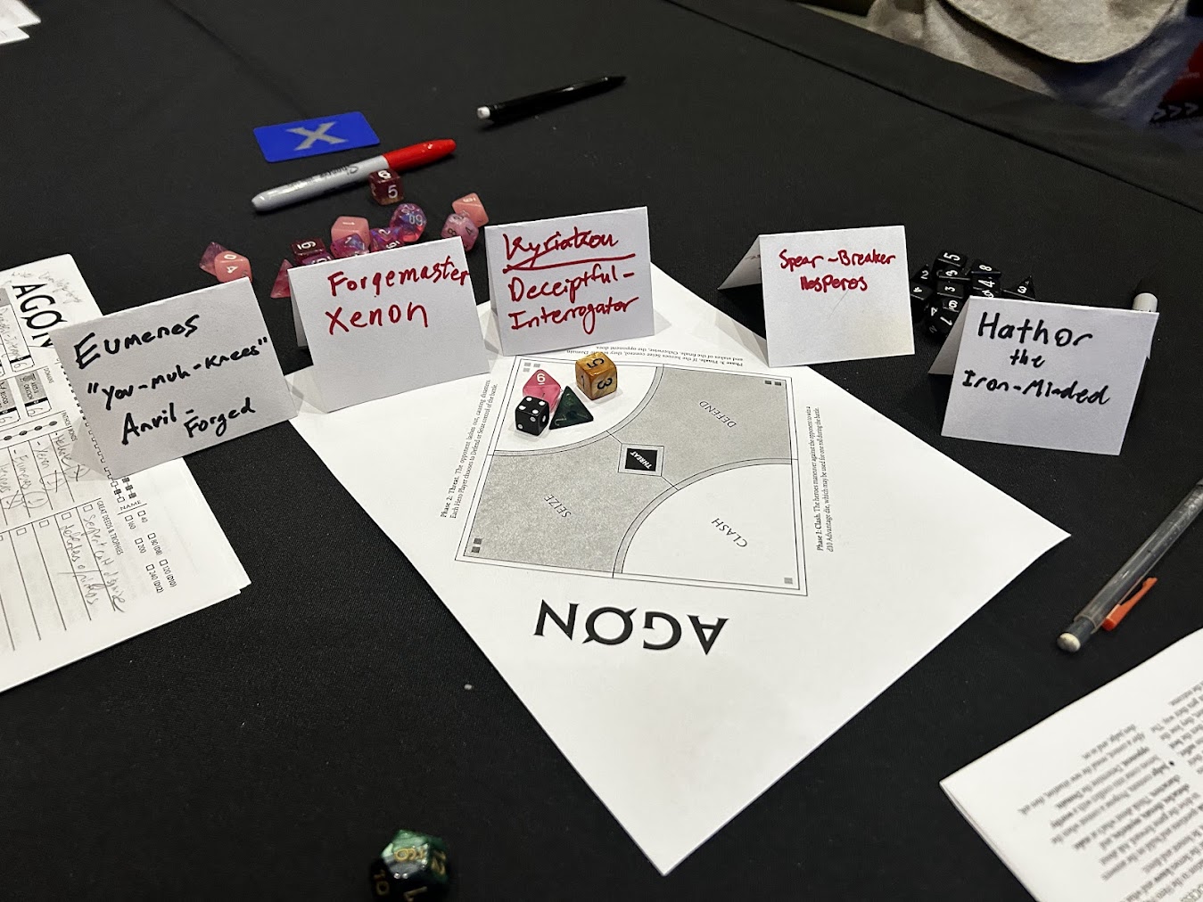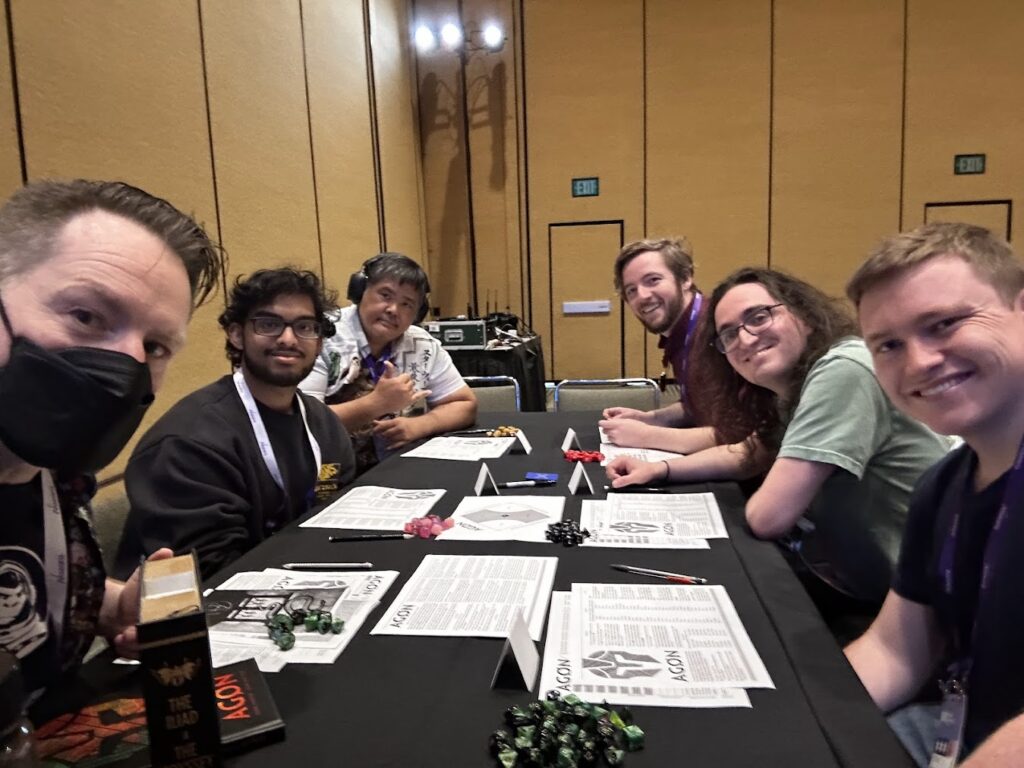 Having taken a few years away from running AGON I was surprised to see how much delight the players had narrating suffering or prevailing compared to engaging in the mechanics, which felt mostly like a means to an end. Though there was some sense of scarcity with pathos, divine favor, etc., the most powerful influencers were always the fiction. Xenon could not abide Apollo’s wisdom being perverted, Hathor would not be denied seeing the dead prince, and Kyriakou could not resist finding a secret.