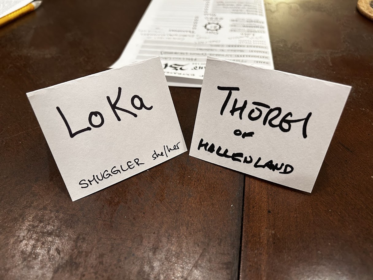 We didn’t have any relationship questions to determine how people knew each other, so when I asked them to make an oath they weren’t sure where to start. The players all figured something out, because they’re naturally good at figuring out how connections are made, but I think I’d like to add a few generic how did your characters get to know each other questions to get the ball rollling.